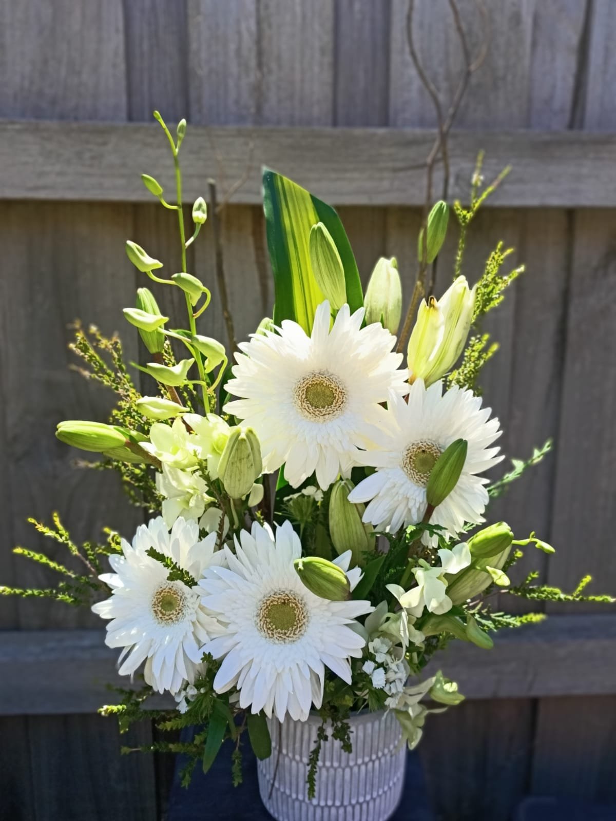 White Gerbera, La lilies, White Orchids.